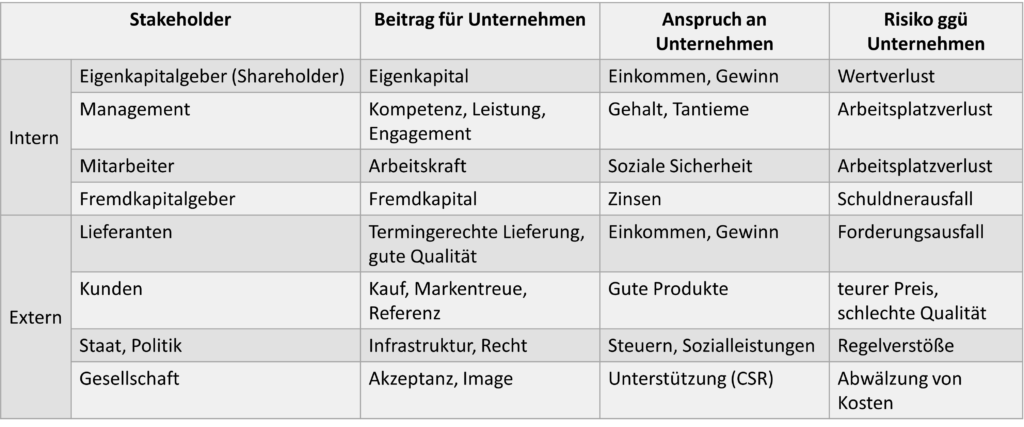 So wird eine Stakeholder-Analyse aufgebaut. (Quelle: Lippold 2020)