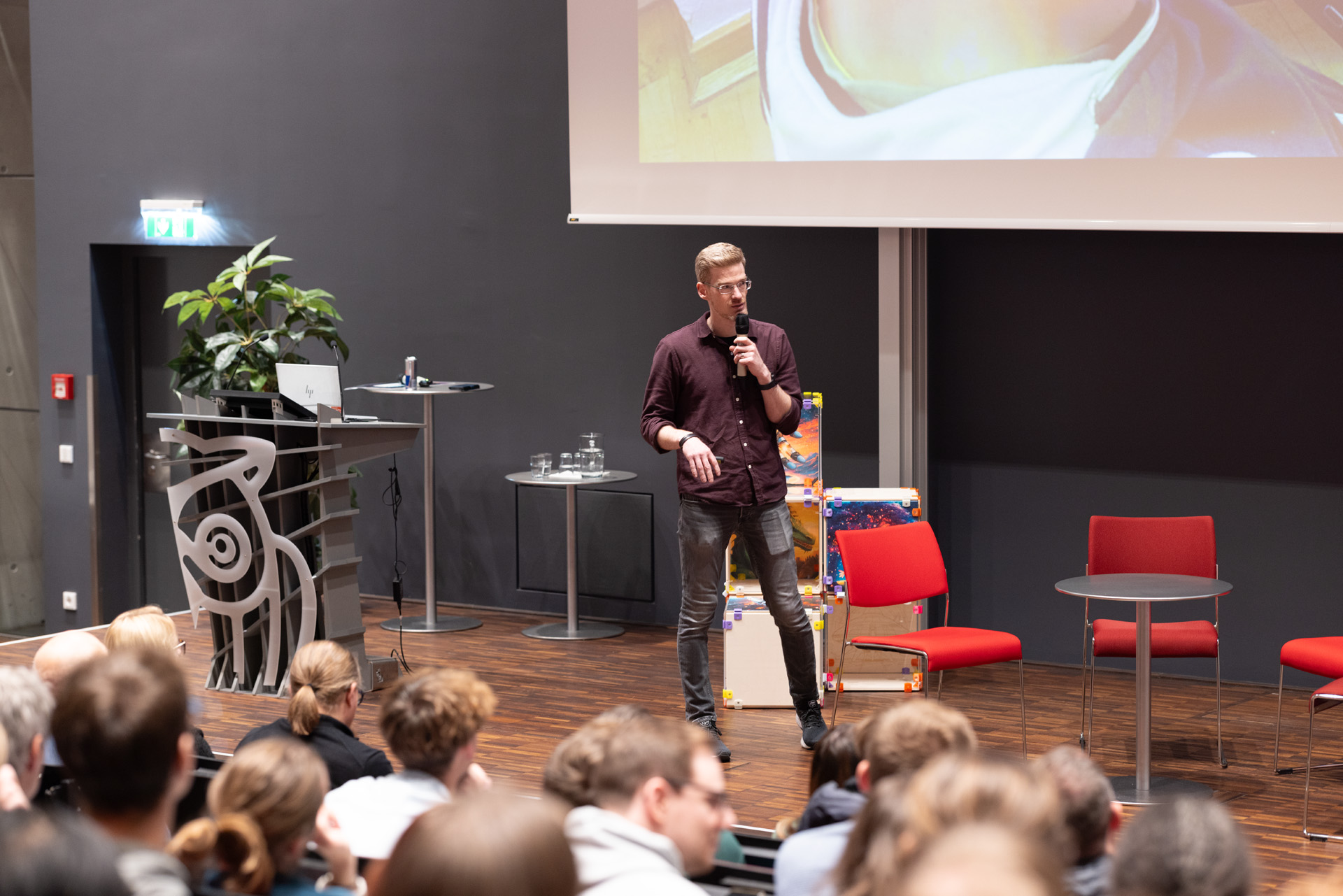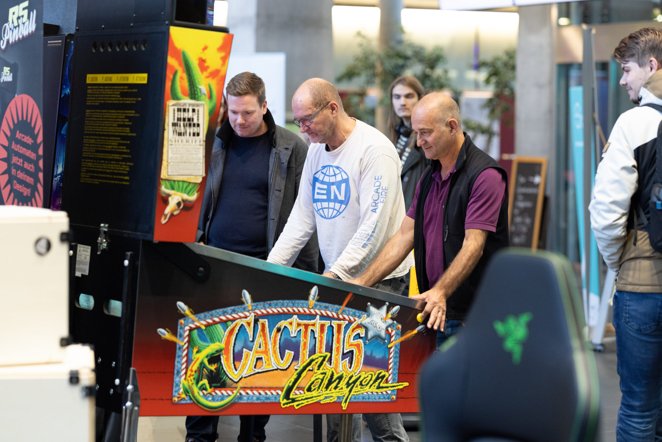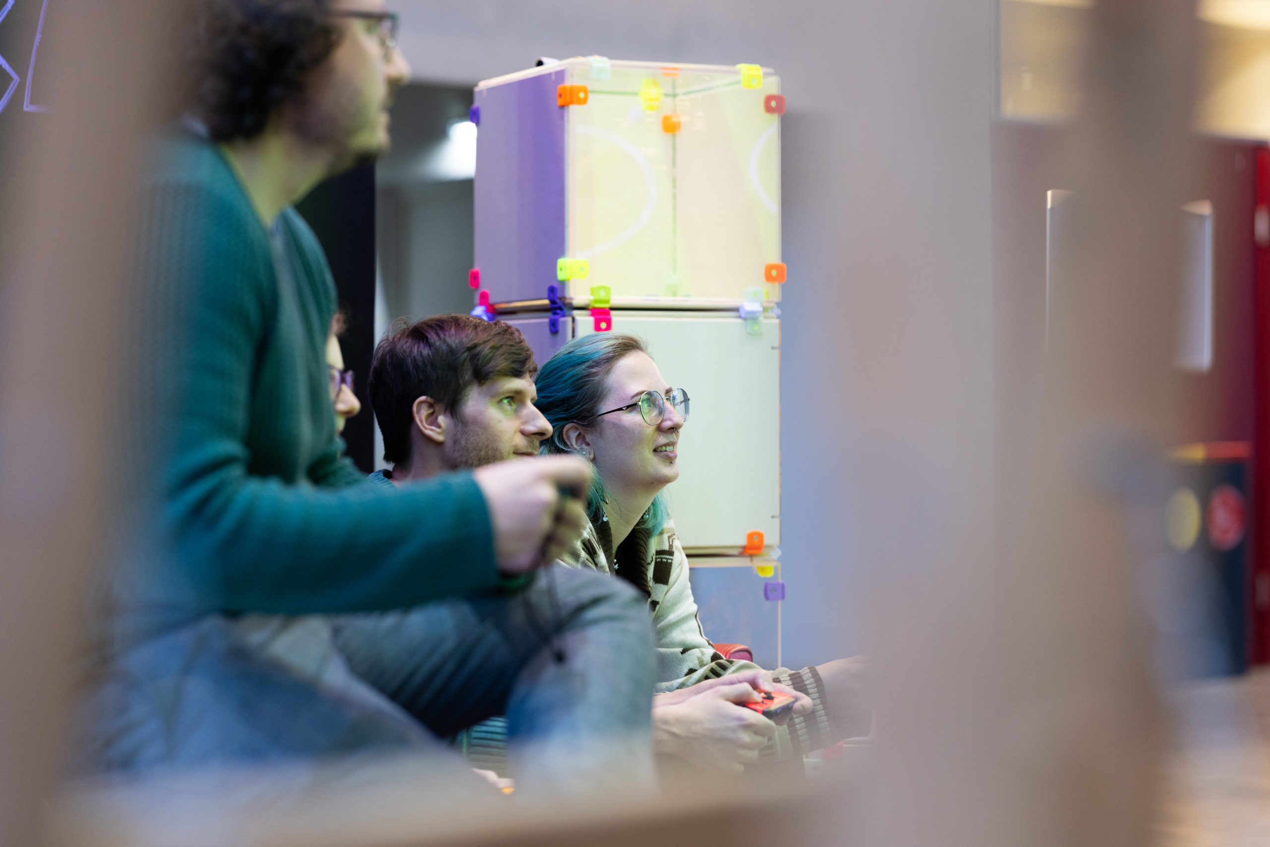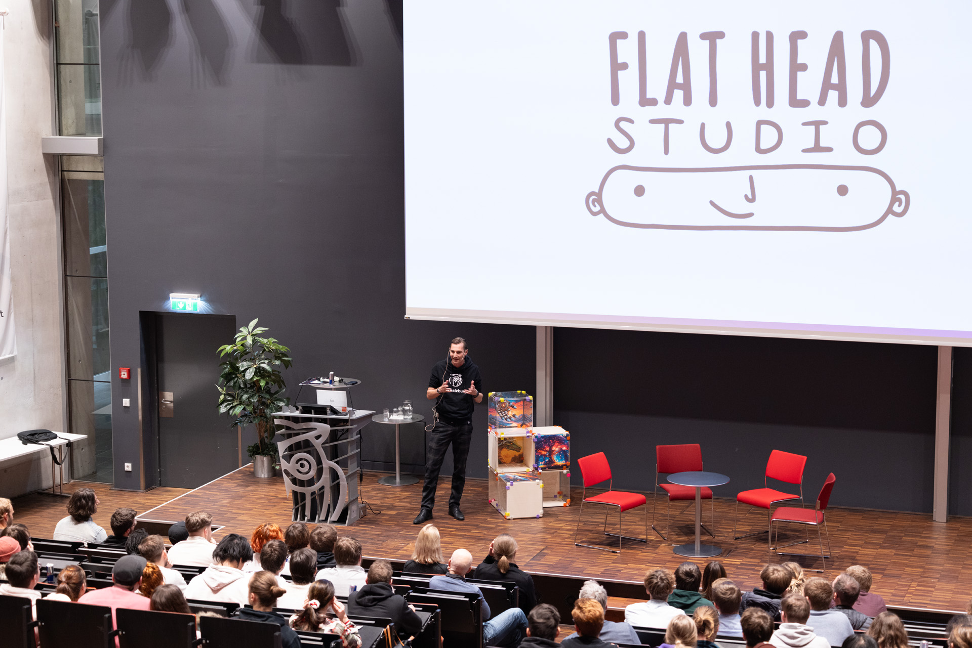 Das Event begann mit dem Pixel Playground im Foyer der FH Salzburg. Diese interaktive Ausstellung bot den Teilnehmer:innen die Möglichkeit, die Spiele der FH Salzburg Studierenden und Absolvent:innen zu testen sowie Entwicklungen im Bereich der digitalen Medien und Spieleentwicklung hautnah zu erleben.