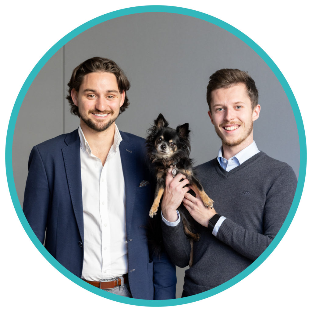 Jonas Lamprecht (li.) und Florian Mittermayr mit Hund Nemo